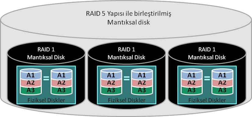 İşletim sistemi RAID arayüzü ile birbirine bağlanmış diskleri tek disk gibi görmektedir. Yedekleme işlemi isşetim sisteminin çoğunlukla haberi olmadan donanım bazında yedeklenmektedir. RAID teknolojisinde SATA, PATA ve SCSI diskler kullanılabilmektedir. Çeşitli RAID konfigürasyon seviyeleri aşağıda verilmiştir. PATA disklerle yapılan RAID seviyeleri RAID0, RAID1 ve RAID0+1 dir. En çok kullanılan raid veri kurtarma hizmeti tarafımızdan verilmektedir.