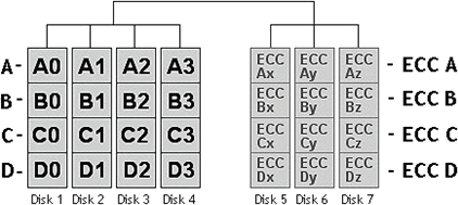 RAID 2: Bit seviyesinde her bir diske yayılmış veri bloklarına karşılık birden fazla ECC(hata bulma&düzeltme) sürücüleri kullanılarak oluşan yapıdır. Burada disk performansı ve güvenlik orta seviyede olsa da veri boyutunun düşük olması verimi azaltmaktadır. Ayrıca diskten okuma yaparken her bir veri ECC disklerindeki eşlik bitlerine bakılarak kontrol edilmesi gerekir. RAID3'e göre bir avantajı yoktur ve ticari anlamda kullanım yeri hemen hiç yoktur.