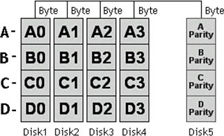 RAID 4: RAID3'e göre verilerin boyutu artırılmıştır ve RAID 3 ile sıkça karıştırılır. Veriler bloklar halinde ayrı ayrı disklere yazılır. Her data disklere sıra ile yazıldığı için yazma işlemi sırasında okuma işlemide yapılabilmektedir. Bu sayede bu yapı üzerinde okuma hızı inanılmaz artmaktadır. Sıralı ve rastgele okuma performansı RAID3 e yakındır. RAID3'e göre tek avantajı veriler bloklara ayrıldığı için uygulamaya göre bloktaki veri miktarının yüksek performans için ayarlanabilmesidir. RAID3 teki gibi ayrı disk üzerine eşlik bitlerinin yazılması yazma işlemi sırasında darboğaz oluşturur. İyi bir performans ve hata düzeltmeye sahiptir. Bu seviye için en az üç disk gereklidir. Raid 4 veri kurtarma hizmeti vermekteyiz.