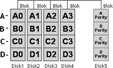 RAID 5: RAID seviyelerinin en çok kullanılan popüler seviyesidir. Veriler farklı disklere bloklar halinde yazılırlar. Fakat ECC kodları için ayrı bir disk bulunmaz ve her bir veri diskine veriye ait ECC kod parçaları yazılır. Bu seviyede RAID3 ve 4 seviyelerindeki yazma işleminde meydana gelen darboğaz en aza indirilmiştir. Veritabanı ve sunucu uygulamalarında sıkça kullanılır. Bu seviye için en az üç disk gereklidir. Raid 5 veri kurtarma hizmeti vermekteyiz.