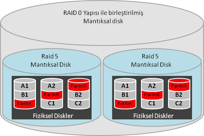 En az 6 adet disk ile oluşturulan bir yapıdır.2 tane Raid 5’in Raid 0 ile birleştirilmesi ile yapılır. Hem performanslı hemde güvenlidir. Raid 5+0 veri kurtarma hizmeti vermekteyiz.