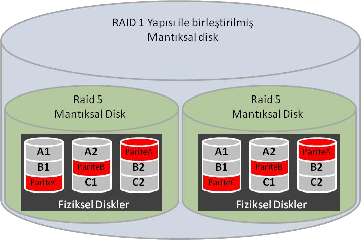Raid 50 ile çok benzerdir.2 adet Raid1 yapıyı Raid 1 ile birleştirerek üretilir. En güvenli yapıdır. Raid 5+1 veri kurtarma hizmeti vermekteyiz.